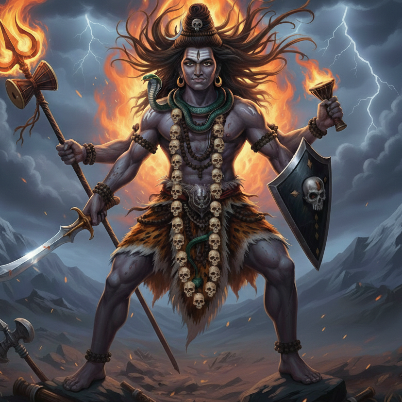 From this, the fierce Veerbhadra emerged. He was fierce, had three burning eyes, and a dark complexion. He asked the Lord Shiva, ‘What is your command? Lord Shiva commanded hims to destroy Dakhsa’s Yagna and punish Dakhsa. Veerbhadra went to launch an attack on Daksha with his warriors and ganas.