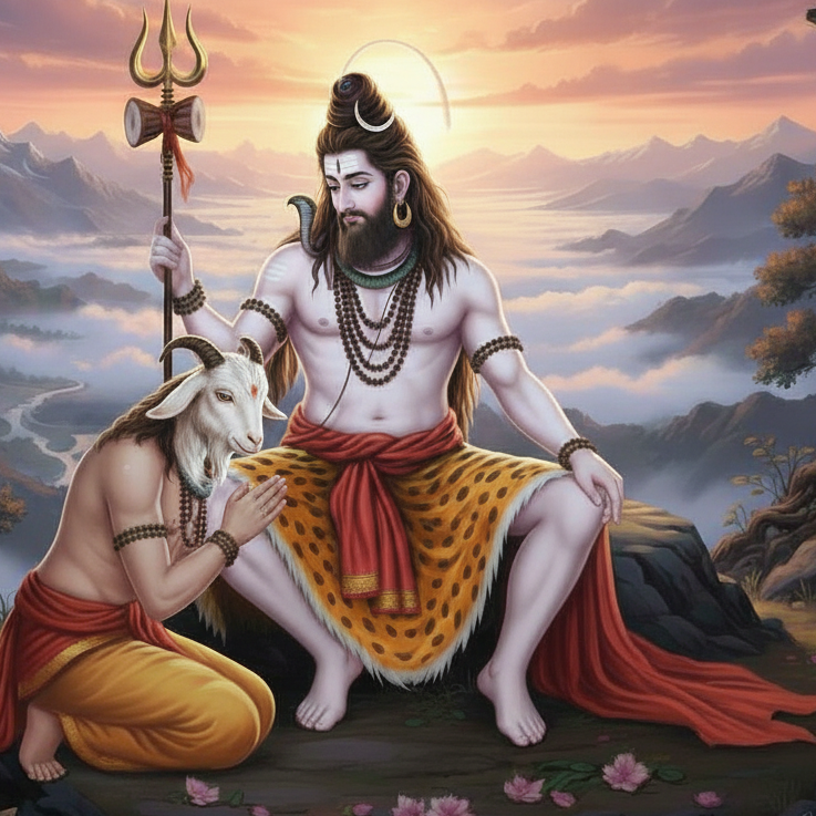 Lord Shiva is called as करुणावतारम् (Karunavataram) means incarnation of mercy and kindness. He said that, one who hates and envies others will face consequences. This catastrophe was a result of his bad karma. As you pray to Me, I will forgive you. I will respect your requests and make Daksha alive with Shiva’s Maya. Lord Shiva went to yagna place and He gave Daksha Goat’s head. In Hinduism the goat’s head symbolized humility and surrendering ego to the divine.Daksha stood up, feeling ashamed of his act. He begged Lord Shiva to forgive him. Lord Brahma thanked Lord Shiva for making his son alive again. They completed the yagna with his blessings. Lord Shiva told Prajapati Daksha, “ I am the one omnipresent being. I am completely in control of the one who has a pure devotion for me. There are four types of devotion. The first one is आर्त (Arta) which means they turn to me when they are in deep pain and suffering. Second one is जिज्ञासु (Jijnasu) which means one who have a desire for true knowledge and a deeper understanding of the soul. The third one अर्थार्थी (Artharthi) which means who turns to me when they have a desire for material prosperity. The fourth one is Jnani (ज्ञानी) which means one who wants to attain spiritual wisdom and liberation. The is Jnani (ज्ञानी) considered the highest type of devotee as per me. Keep your mind and soul pure. Your yagya got destroyed because of your ego and arrogance. Everyone felt blessed after hearing this knowledge from Lord Shiva. Lord Shiva blessed everyone and went back to mount kailasa.
